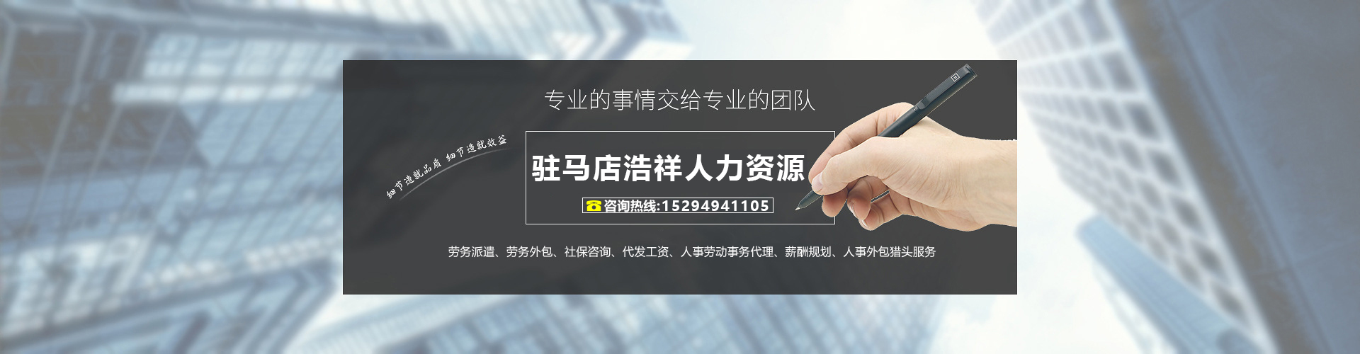 駐馬店市浩祥人力資源有限公司是一家專注于高端人才推薦、專業(yè)技能人才挖掘、優(yōu)秀人才輸送、基層員工培養(yǎng)(職業(yè)化培訓(xùn))、人事代理、工資與薪酬服務(wù)、勞務(wù)派遣、福利保險(xiǎn)、勞動(dòng)關(guān)系管理的全方位、多層次、綜合性人力資源有限公司。
